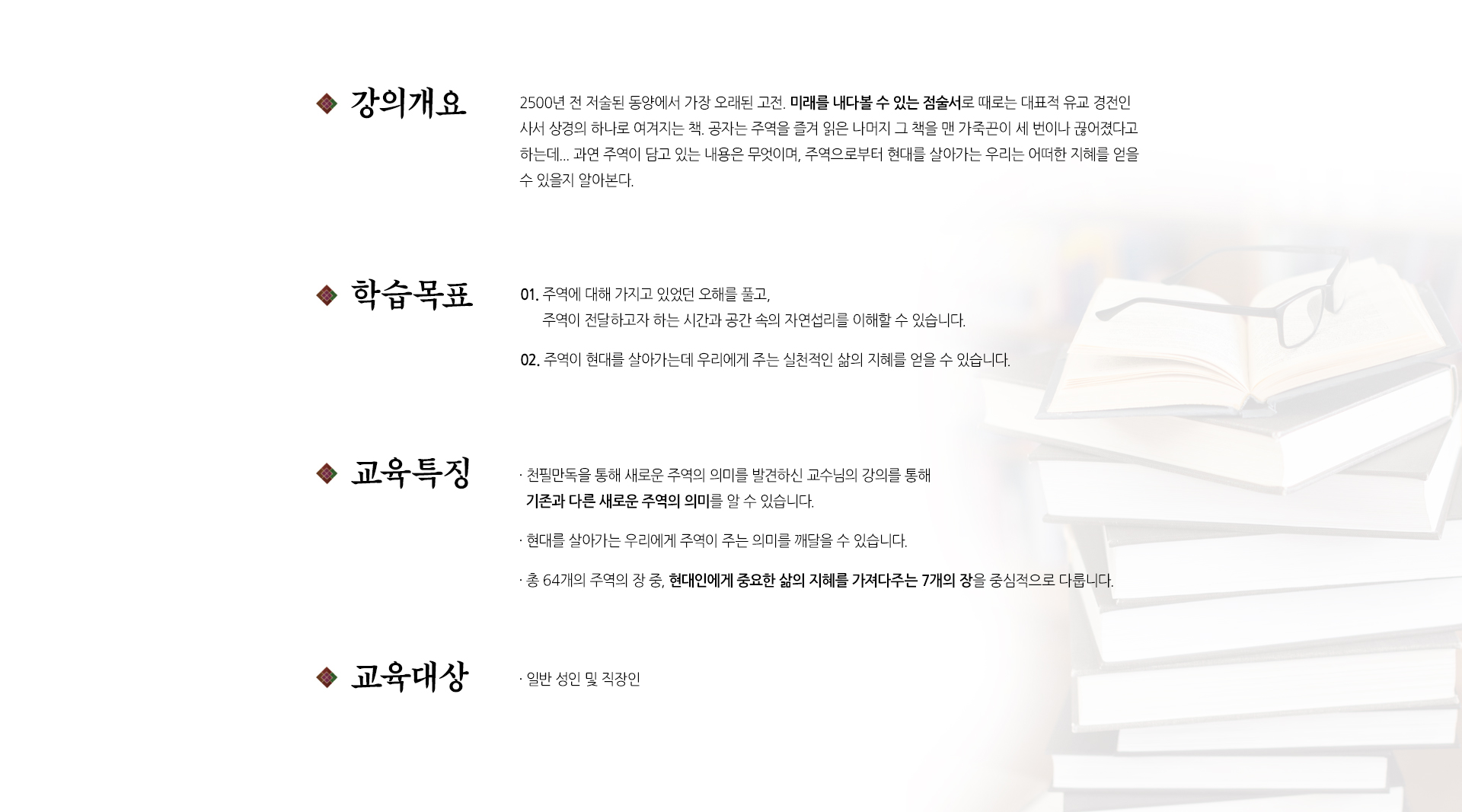 | 2020-05-21 | 주역에 대한 막연히 알고 있었지만 금번 학습에서 많이 배우고 생각하는 기… | 이◎◎ |